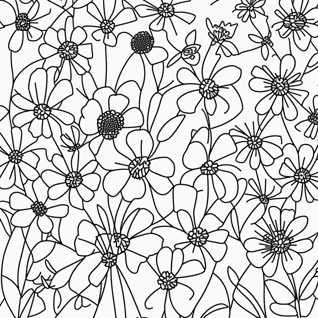Beautiful Line Art Garden for Kids: Flowers and Butterflies