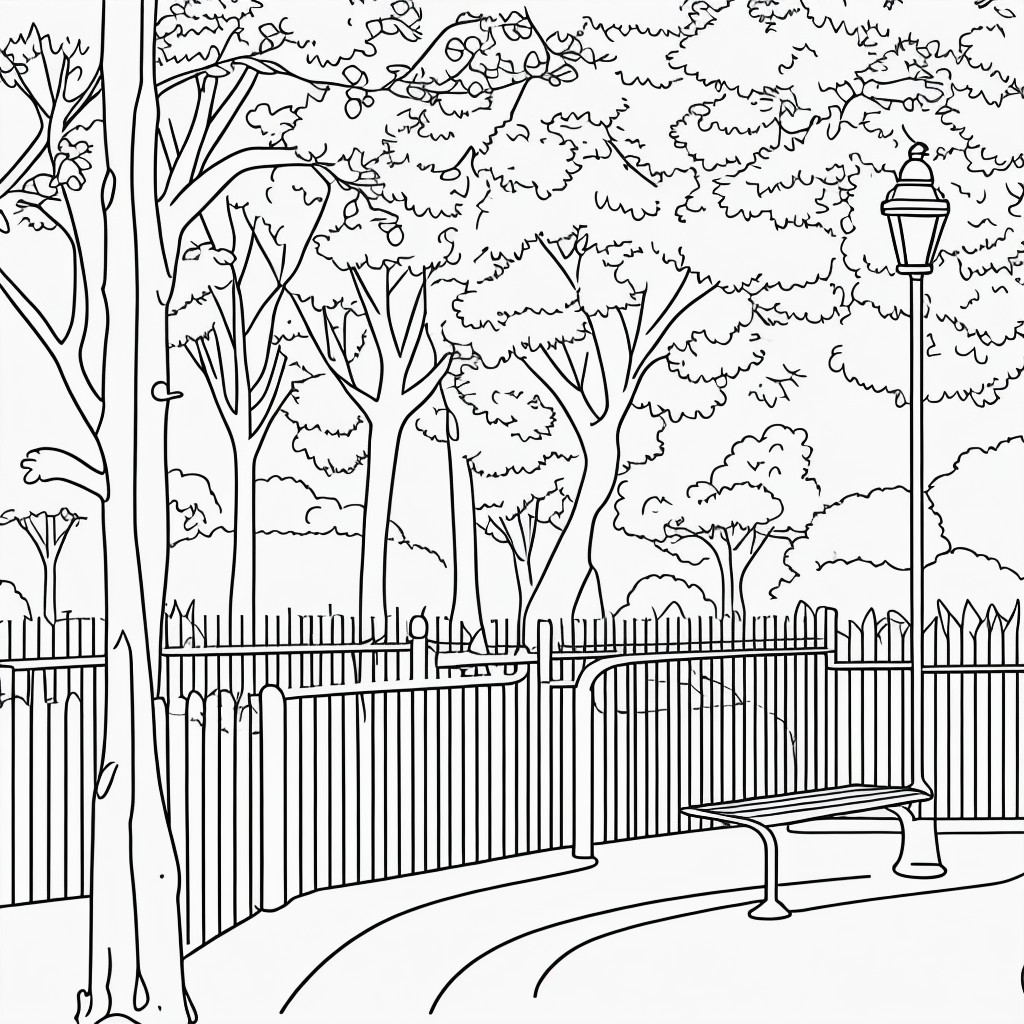 Unleash your creativity with our simple black and white vector line art of a park. Perfect for a children's coloring…