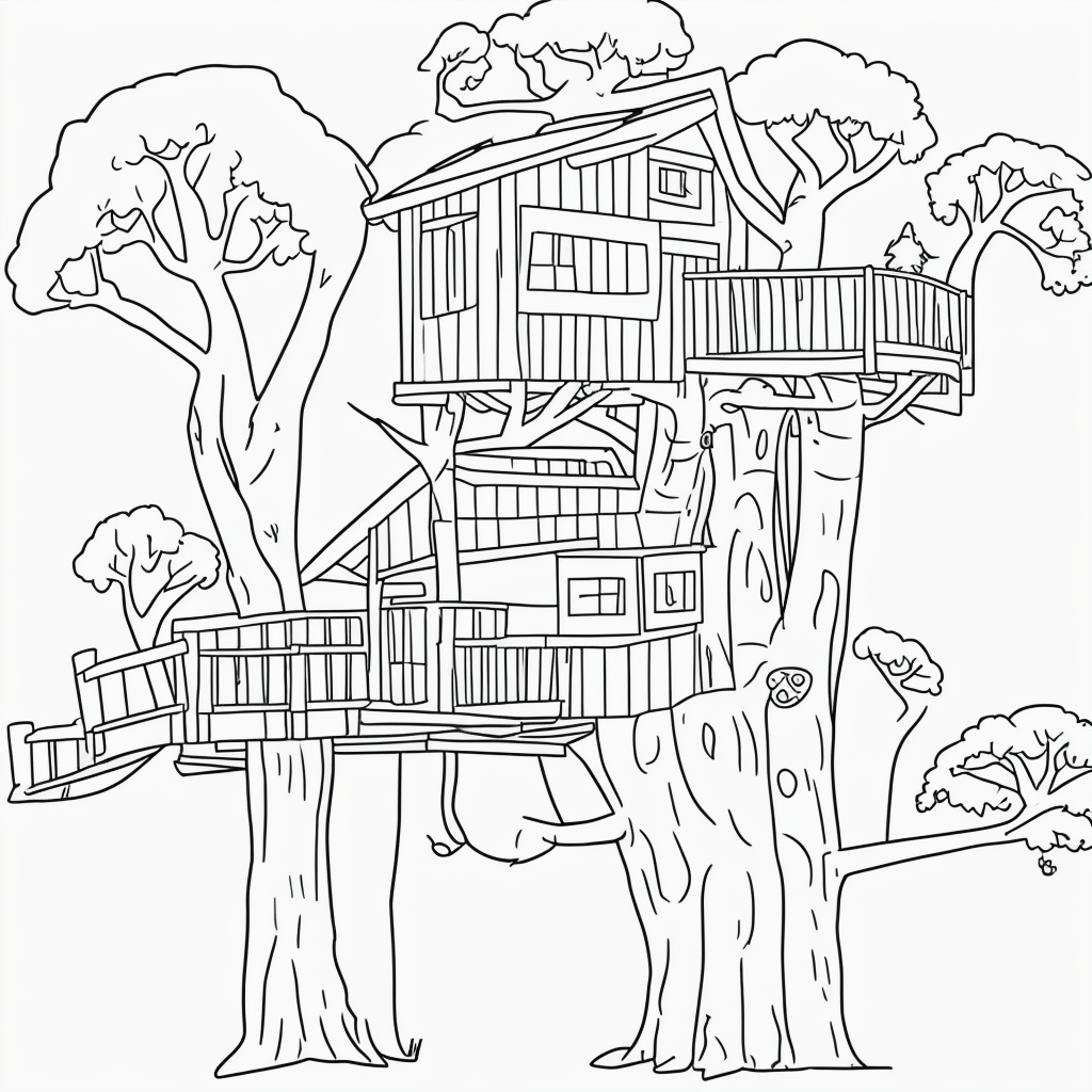 Explore Simple Treehouse Line Art for Kids’ Coloring Fun