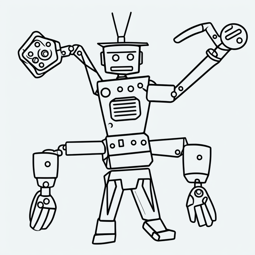 Explore the world of simple black and white vector line art with this delightful robot toy illustration. Designed as a…