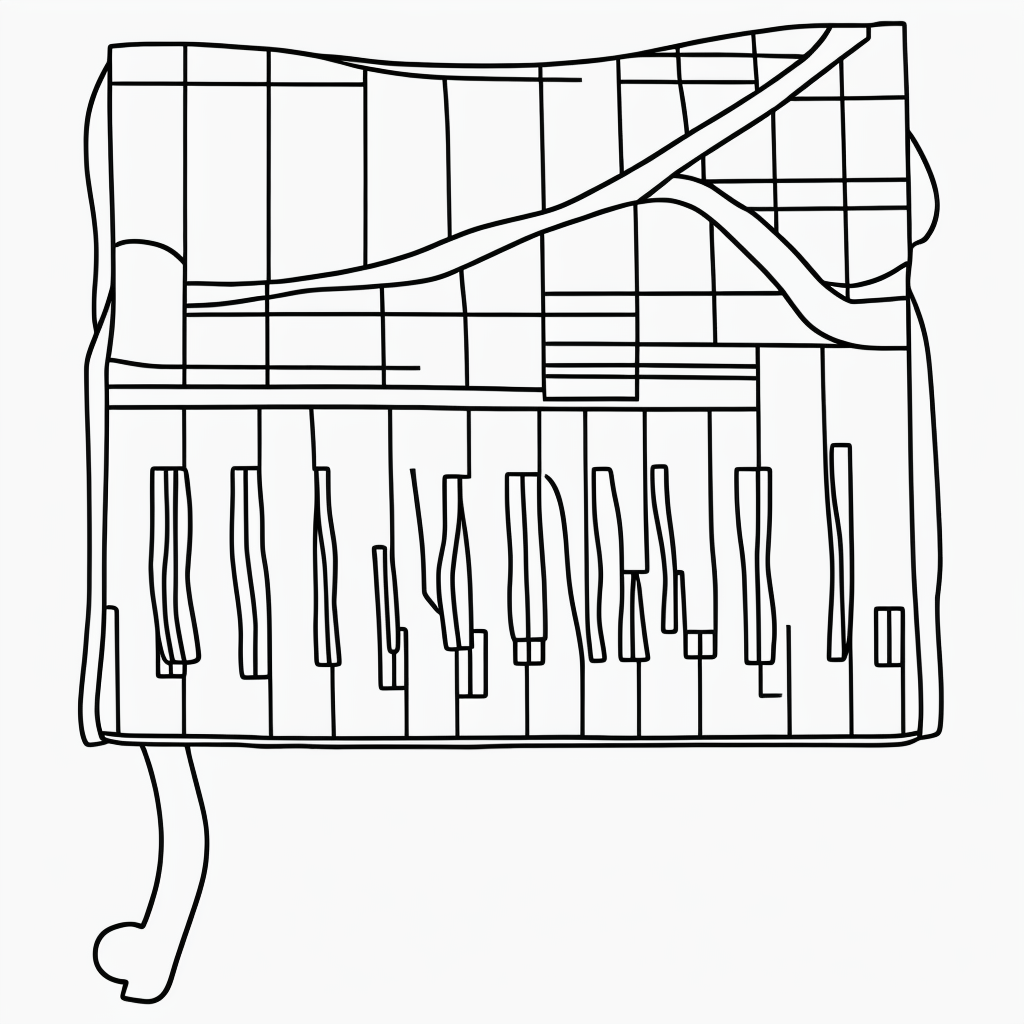 Discover the joy of creativity with our simple black and white vector line art of a piano keyboard and musical…