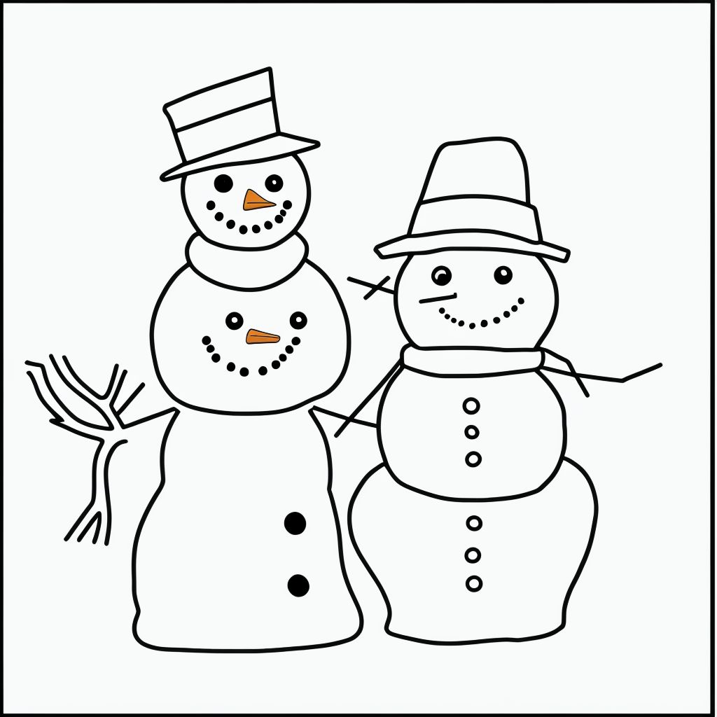 Charming Snowman Line Art for Kids’ Coloring Fun