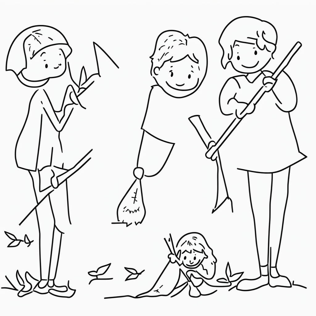 Discover the joy of autumn with our simple black and white vector line art of children raking fall leaves. These…