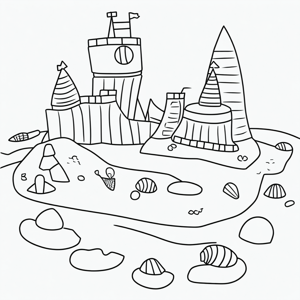 Simple Black and White Sandcastle Coloring Page
