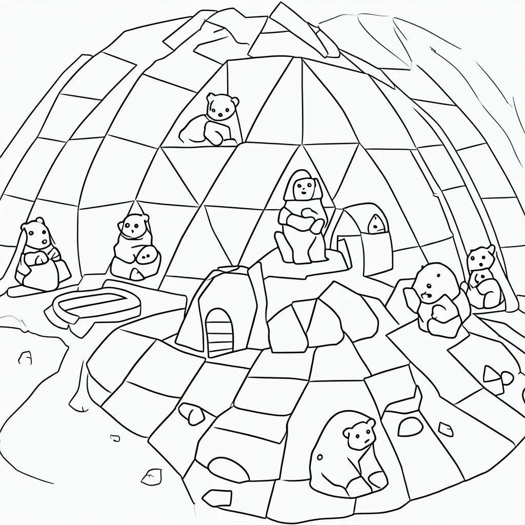 Fun Polar Bear Coloring Page: Build an Igloo Adventure
