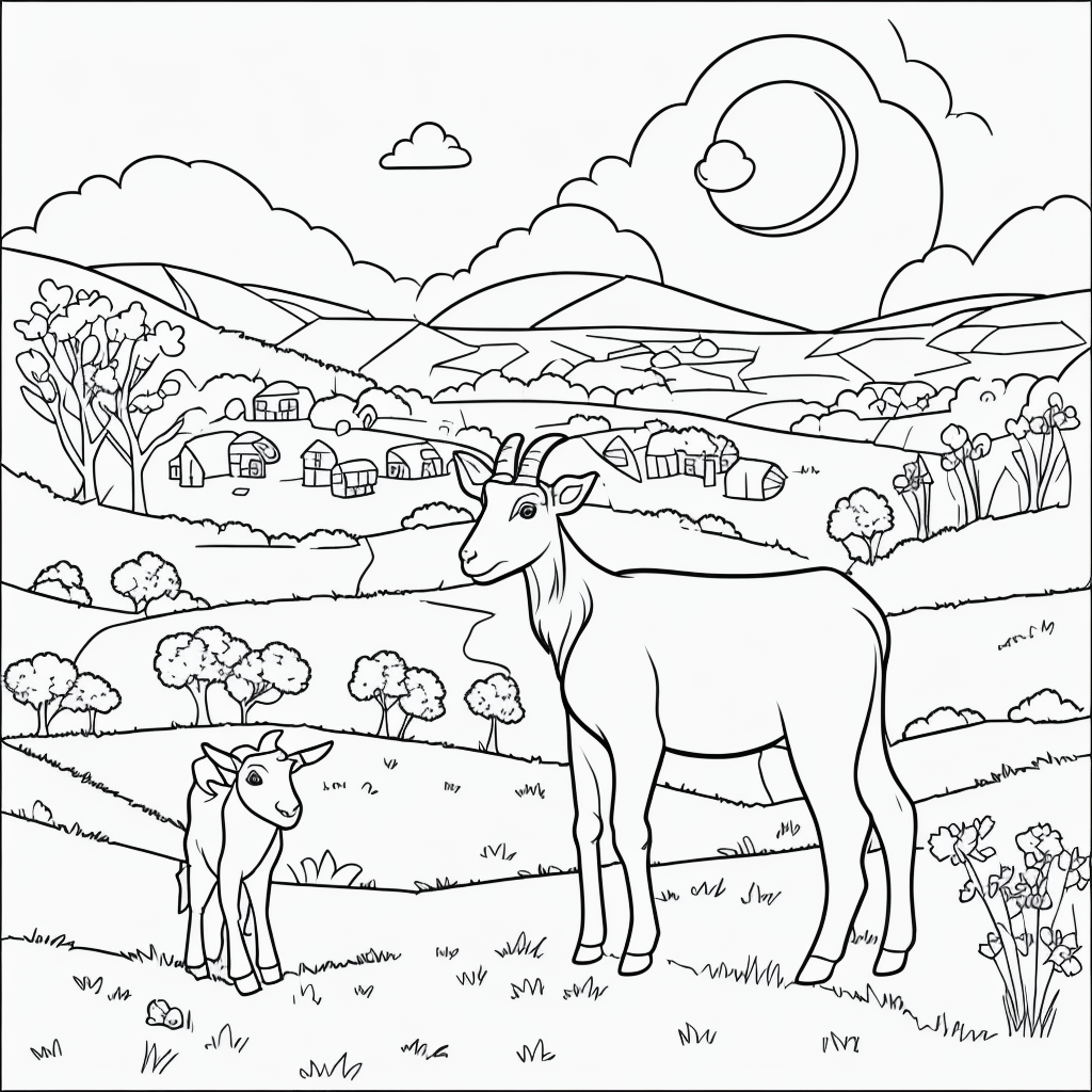 Explore the world of creativity with our simple black and white coloring page of a goat on a hill. Perfect…