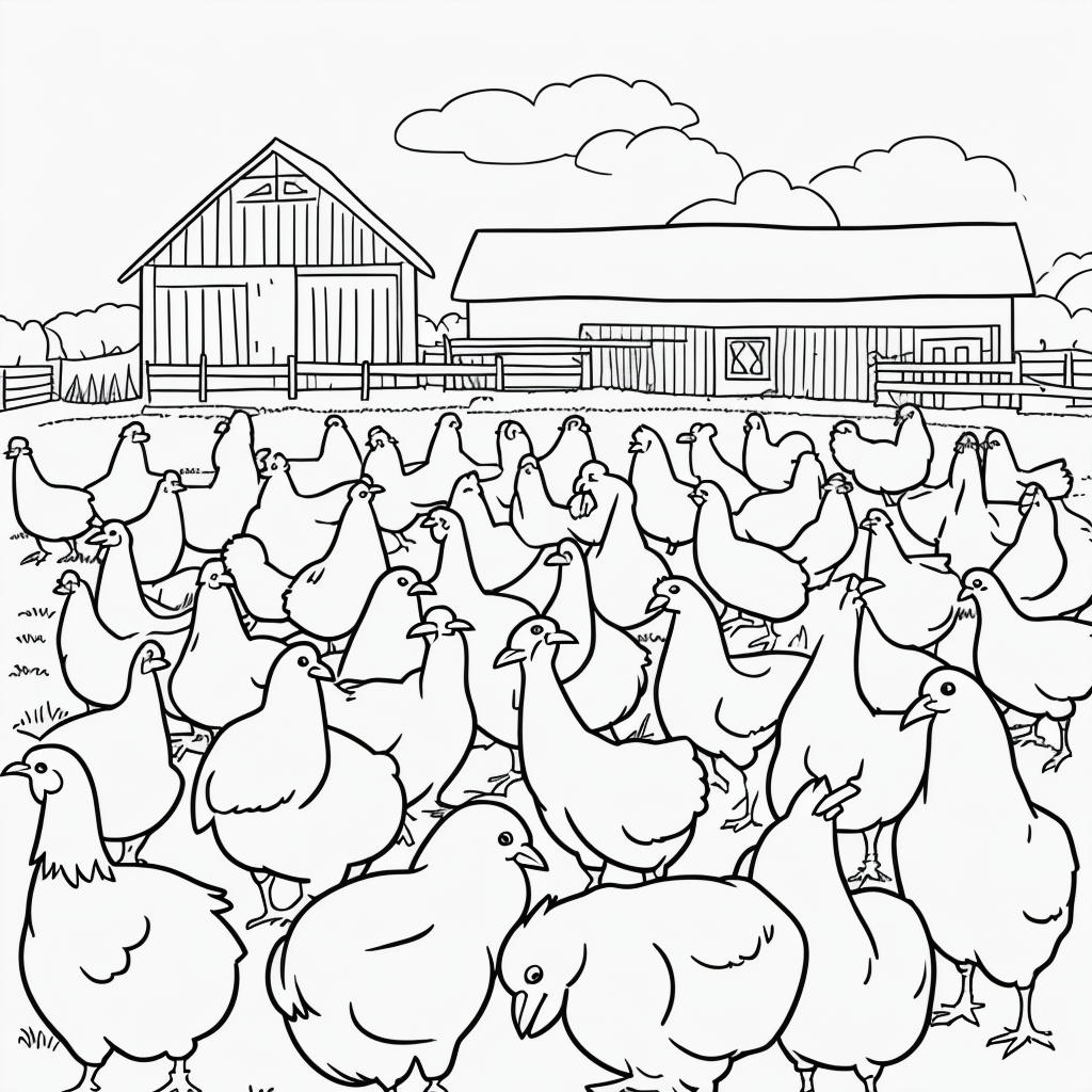 Discover the joy of simple black and white vector art with this delightful coloring page featuring chickens pecking near a…
