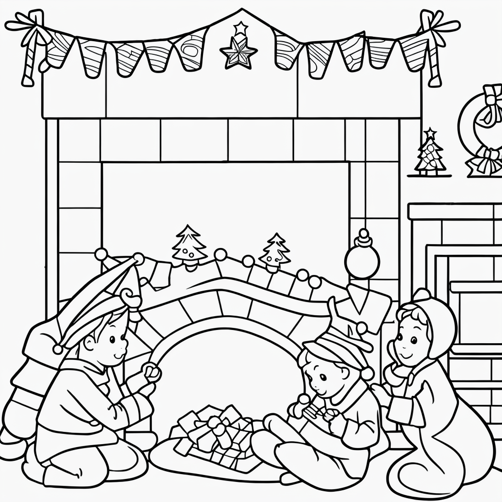 Enchanting Elves Coloring Page for Kids: Santa’s Workshop Fun