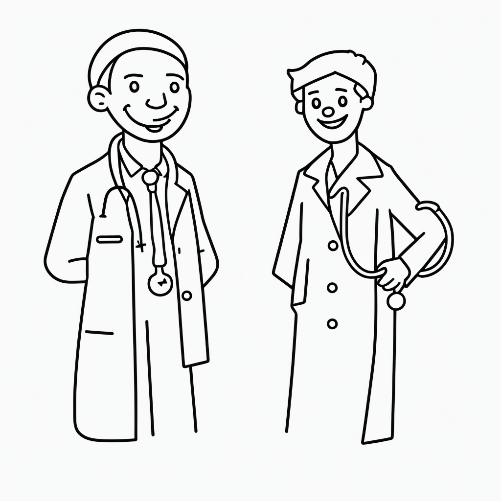 Explore our delightful black and white vector line art featuring a doctor with a stethoscope and a smiling patient. This…
