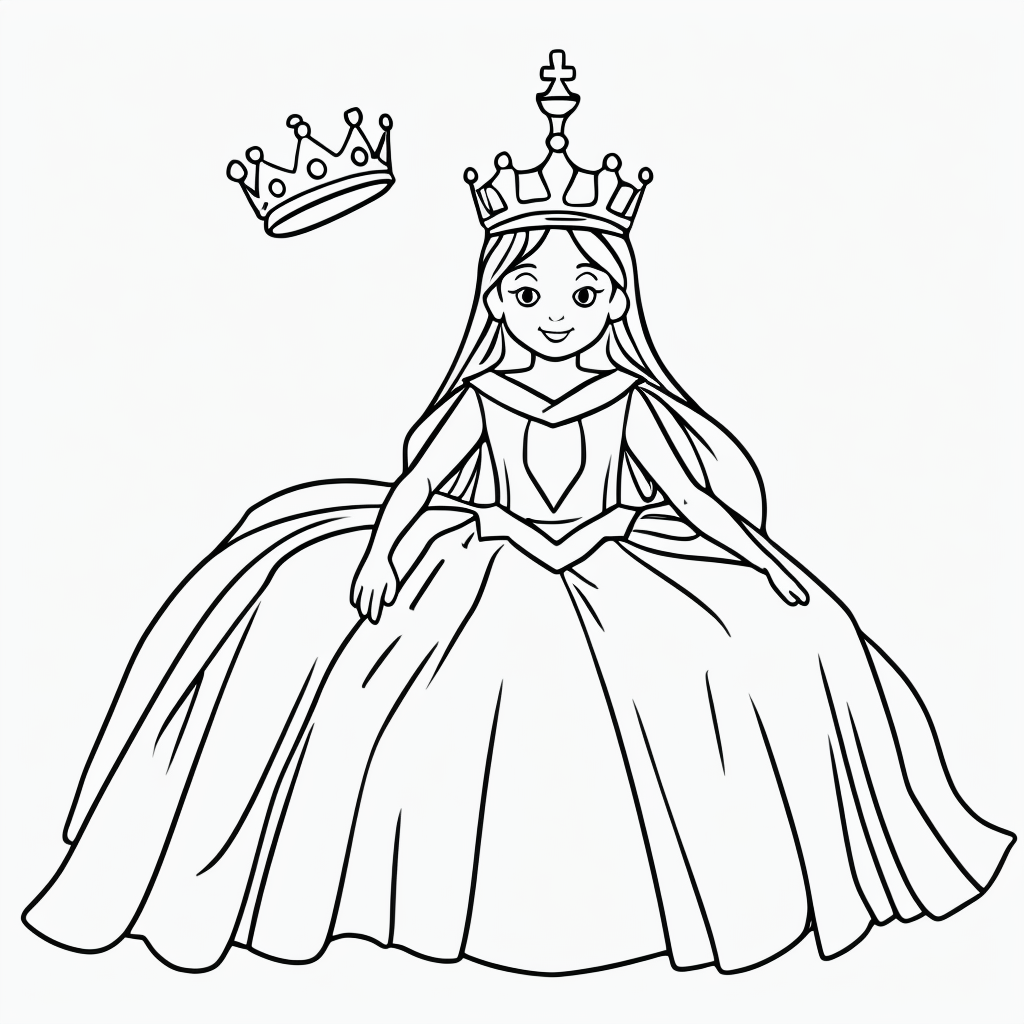 Charming Princess Line Art for Kids’ Coloring Fun