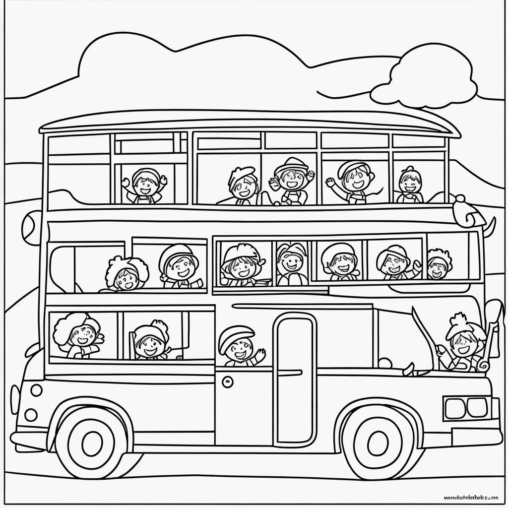 Introduce your kids to the joy of coloring with our delightful black and white school bus coloring page. Featuring happy…