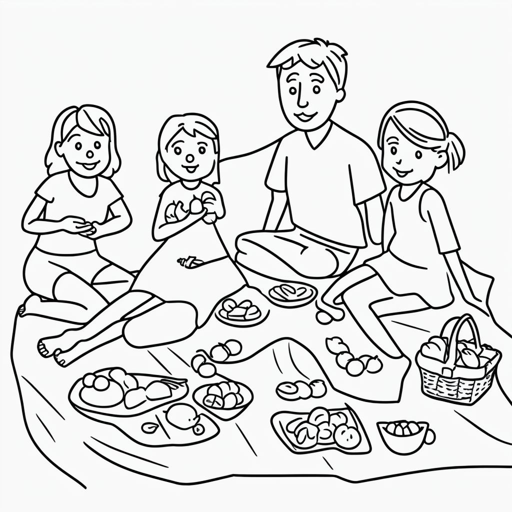 Discover the joy of family picnics with our simple black and white vector line art coloring page. Perfect for children,…