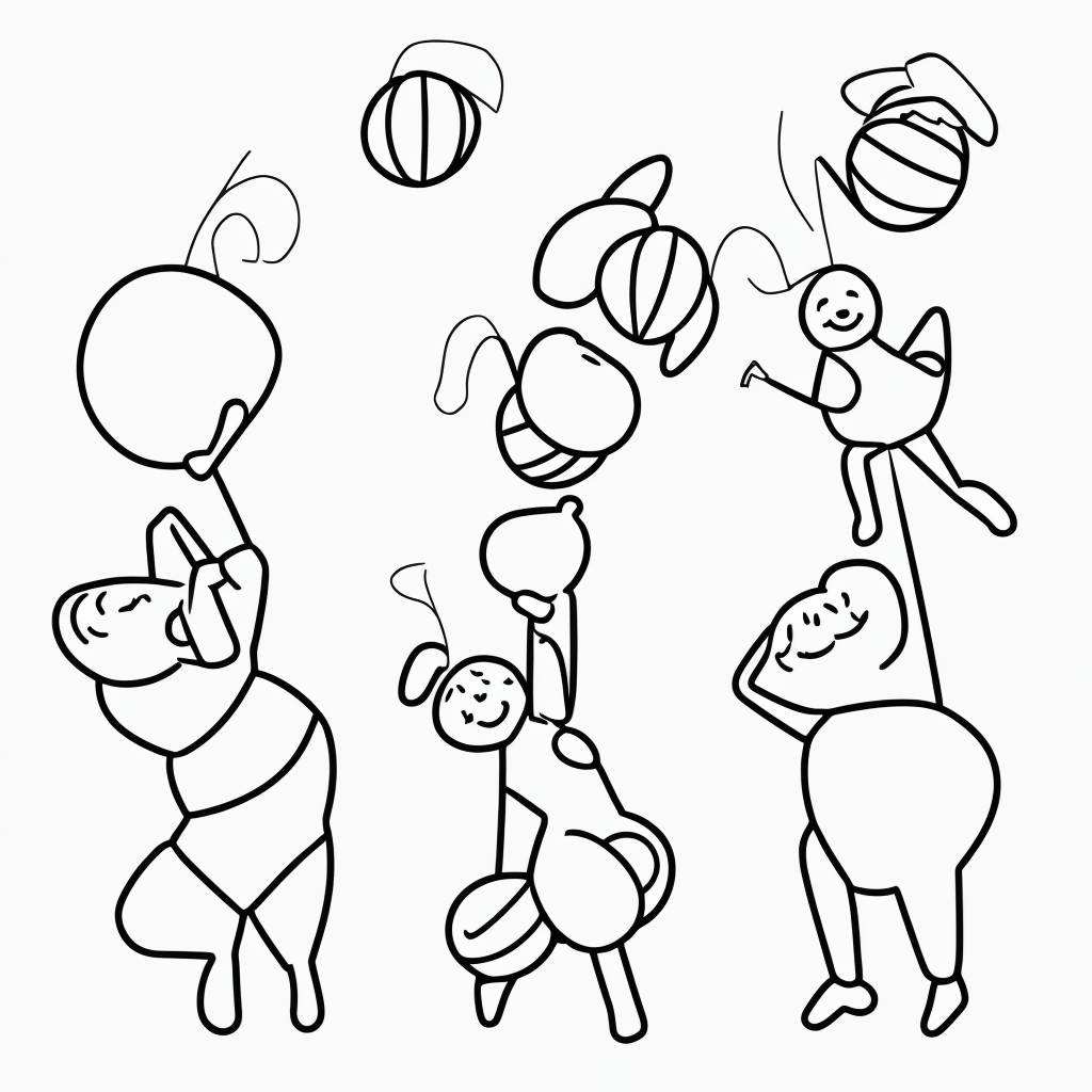 Delightful Clown Juggling Line Art for Kids’ Coloring