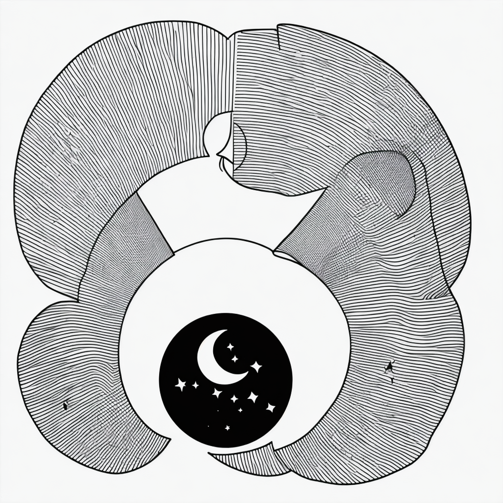 Enchanting Crescent Moon and Shooting Stars Line Art