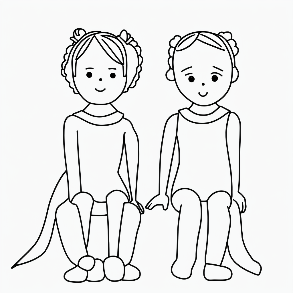 Charming Line Art Doll with Pigtails for Coloring Fun