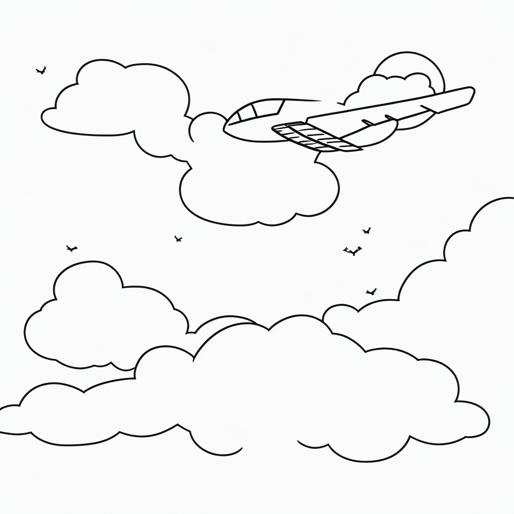 Explore the joy of creativity with our simple black and white vector line art of an airplane soaring through clouds.…