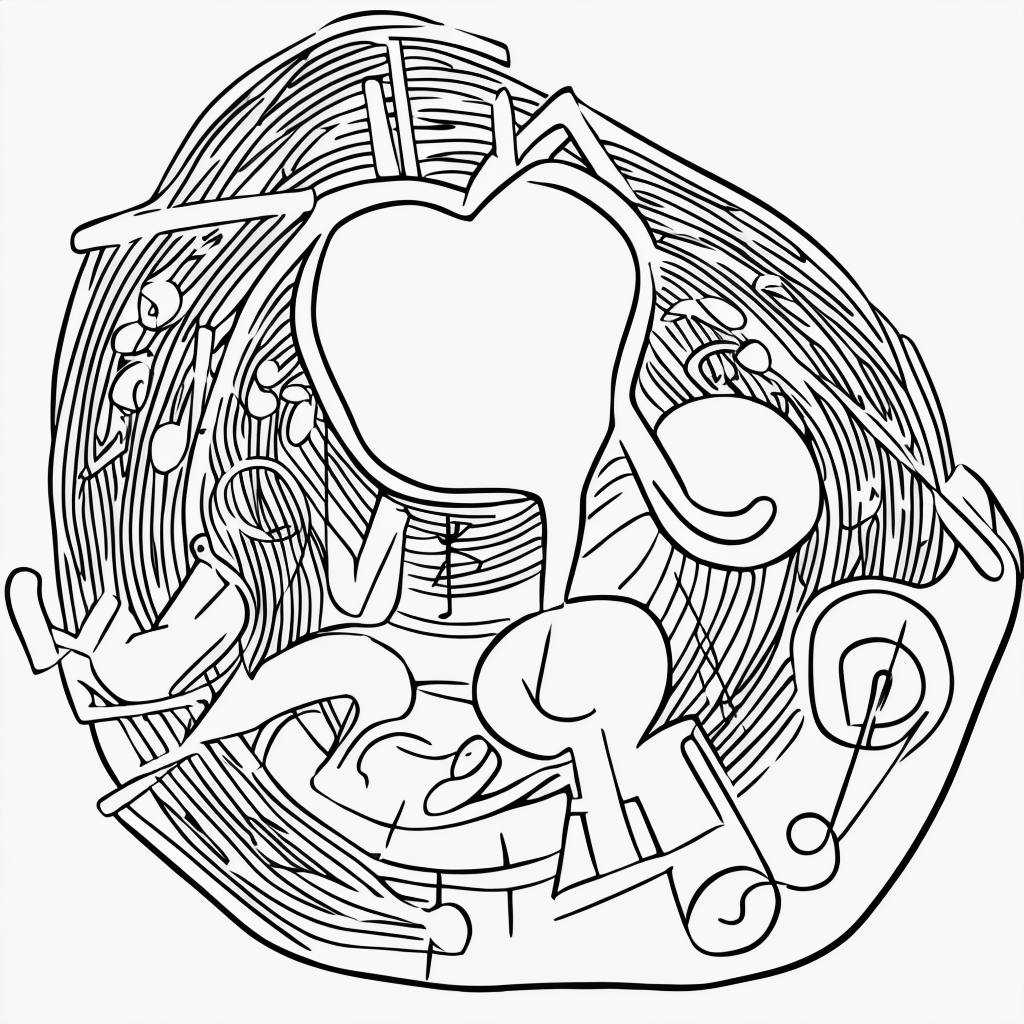 Discover our enchanting collection of black and white vector line art featuring a drum and musical notes. Designed with bold,…