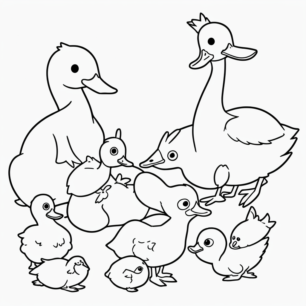 Discover an adorable black and white coloring page featuring a duck and its ducklings. Perfect for kids, this line art…