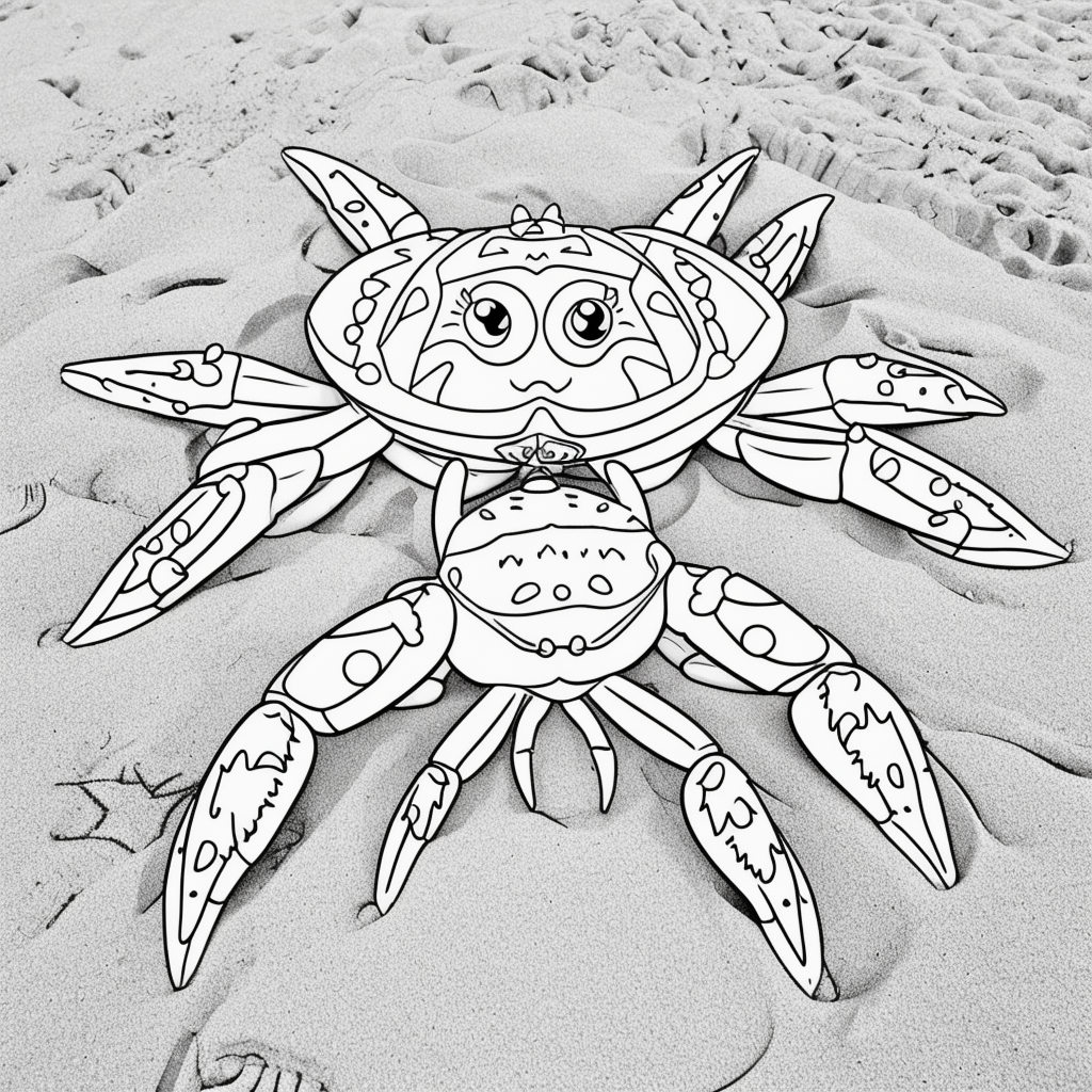 Dive into the world of creativity with our delightful black and white coloring page, featuring a charming crab and a…