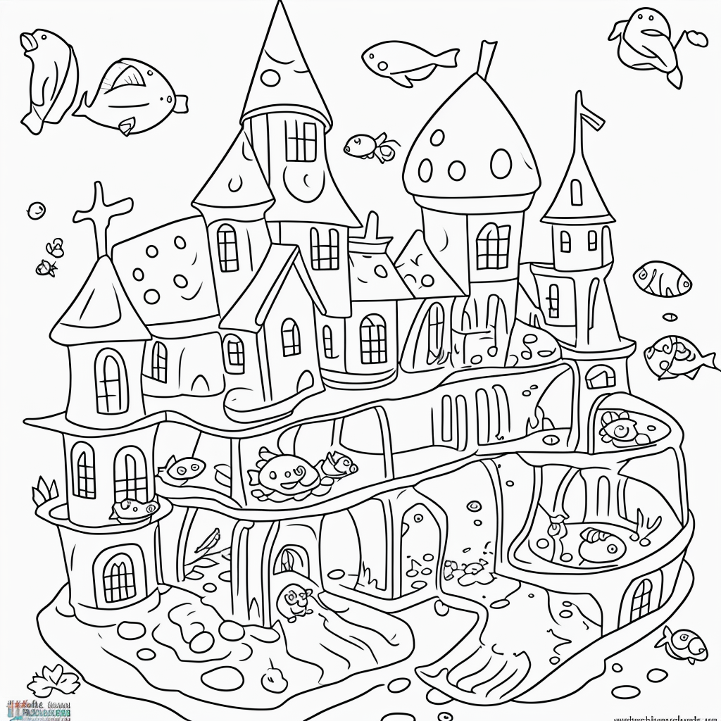 Explore Underwater Castle Coloring Page for Kids