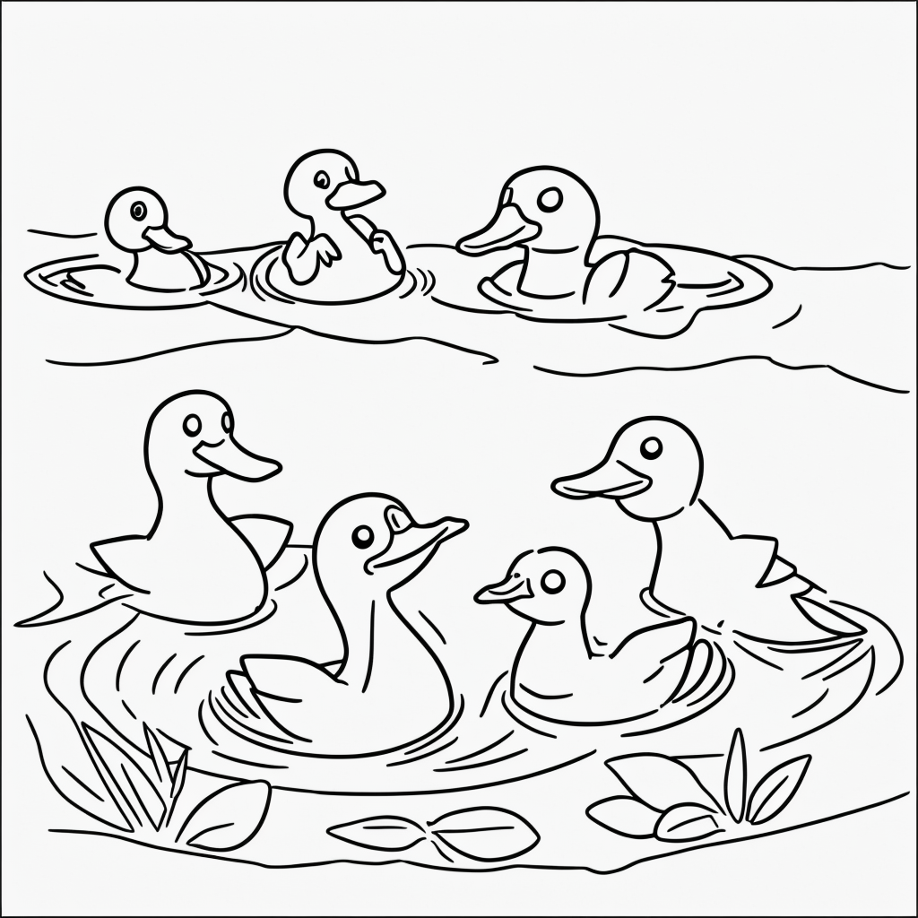 Dive into the world of creativity with our delightful black and white coloring page featuring a charming family of ducks…