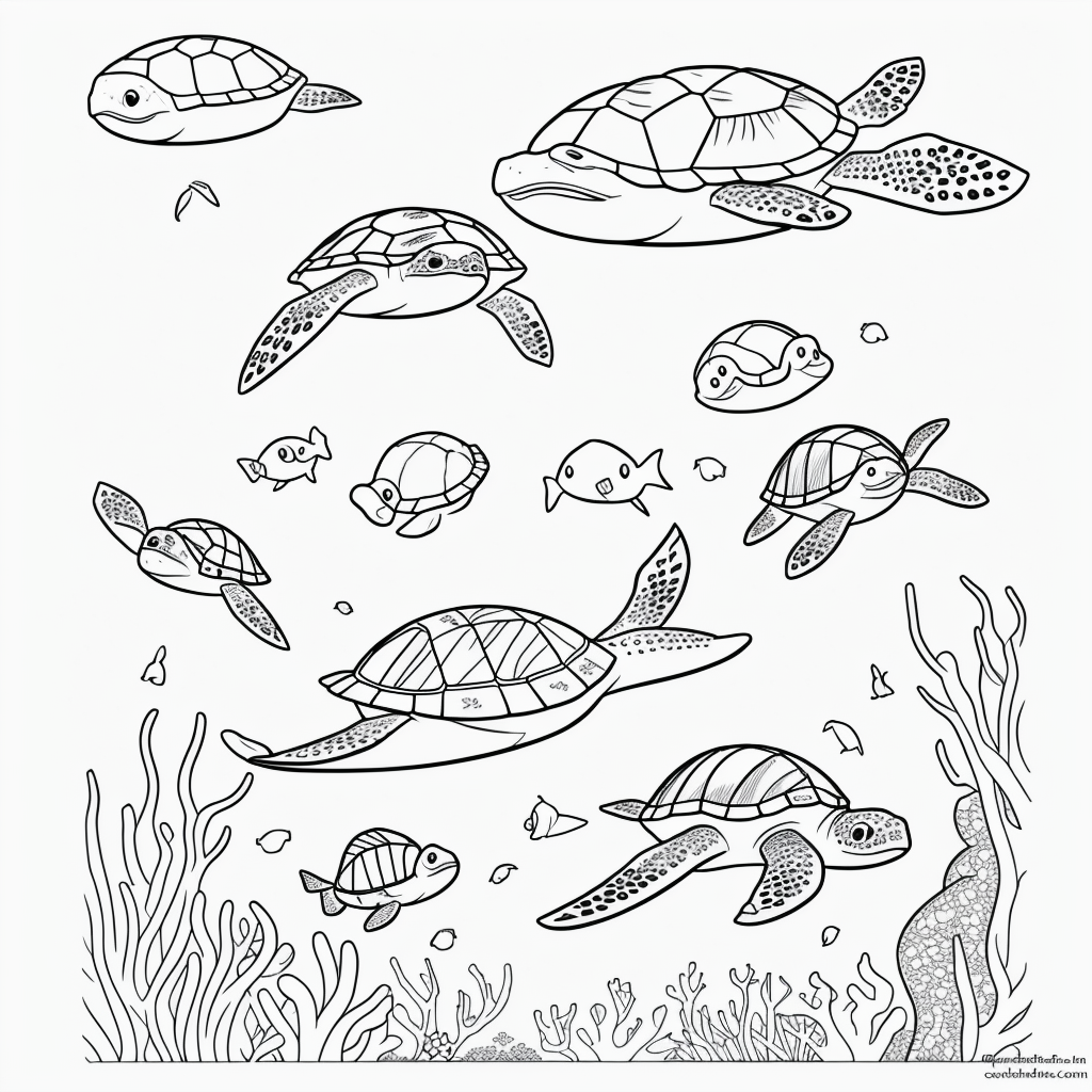 Fun Sea Turtle Coloring Page for Kids: Coral Adventure