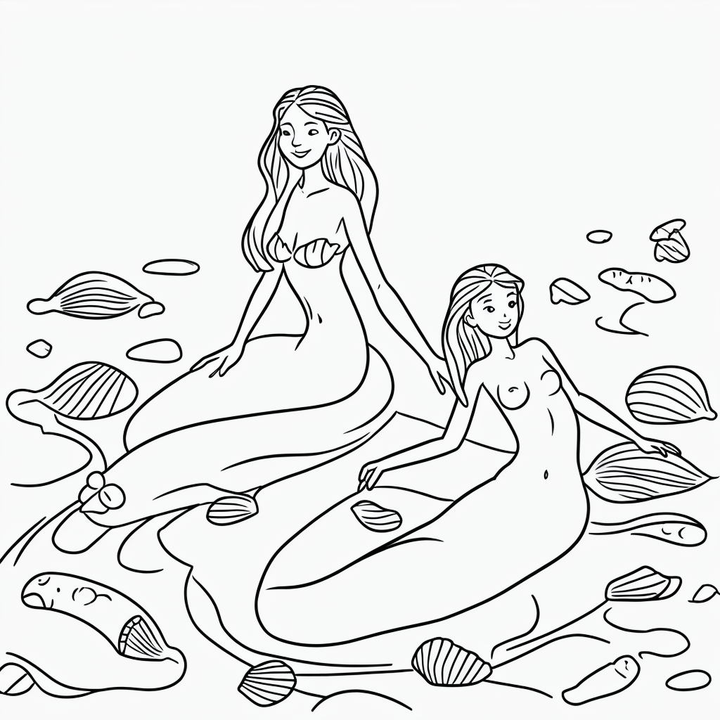 Dive into the magical world of mermaids with this children's printable coloring page. A simple black and white vector line…