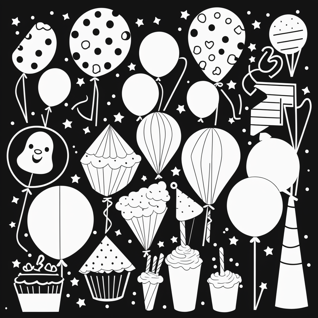 Discover the joy of coloring with our simple, black and white vector line art of a birthday party scene. Perfect…