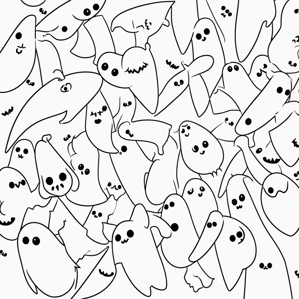 Discover our delightful black and white vector line art featuring playful ghosts and bats. Perfect for children's printable coloring pages,…