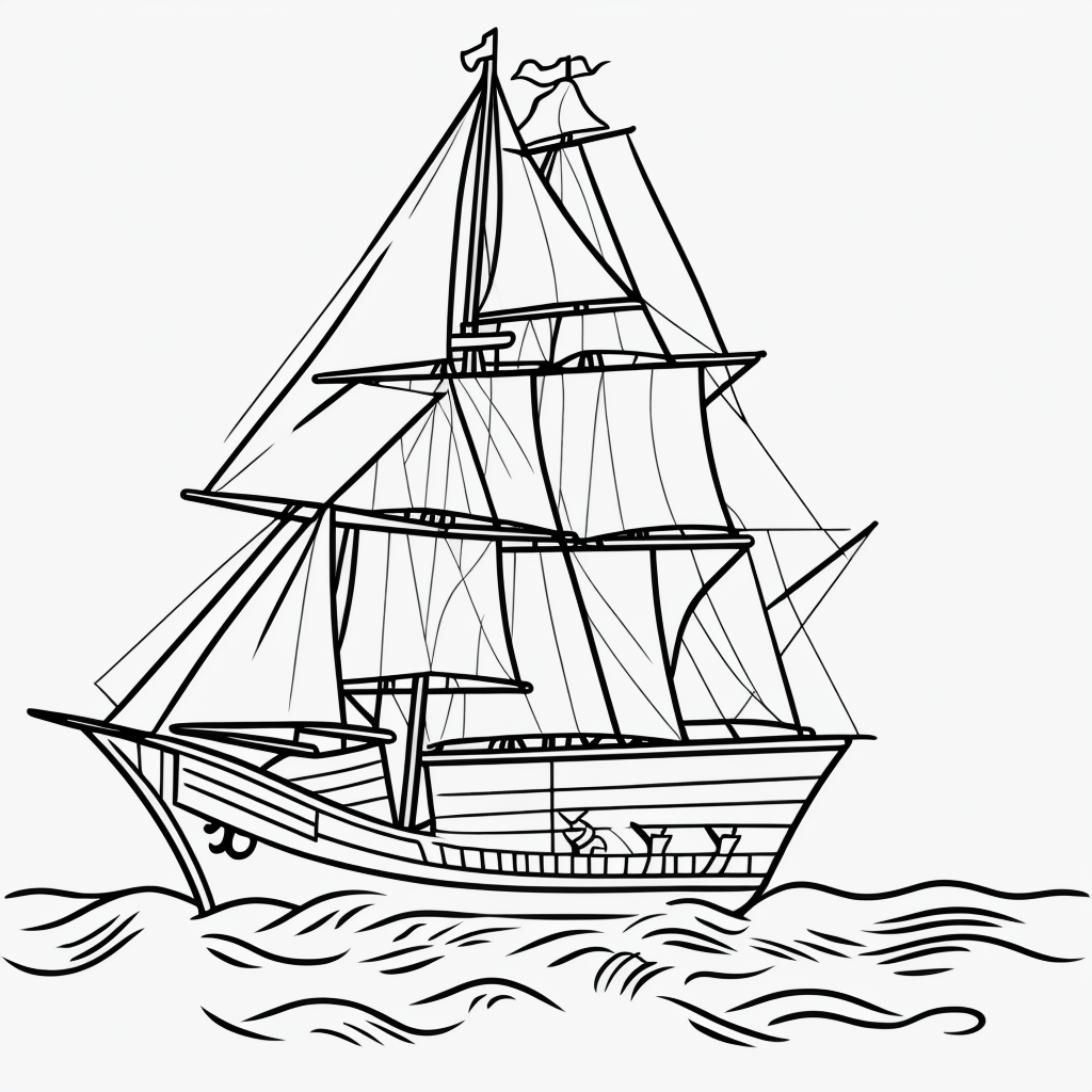Simple Pirate Ship Line Art for Kids’ Coloring Fun