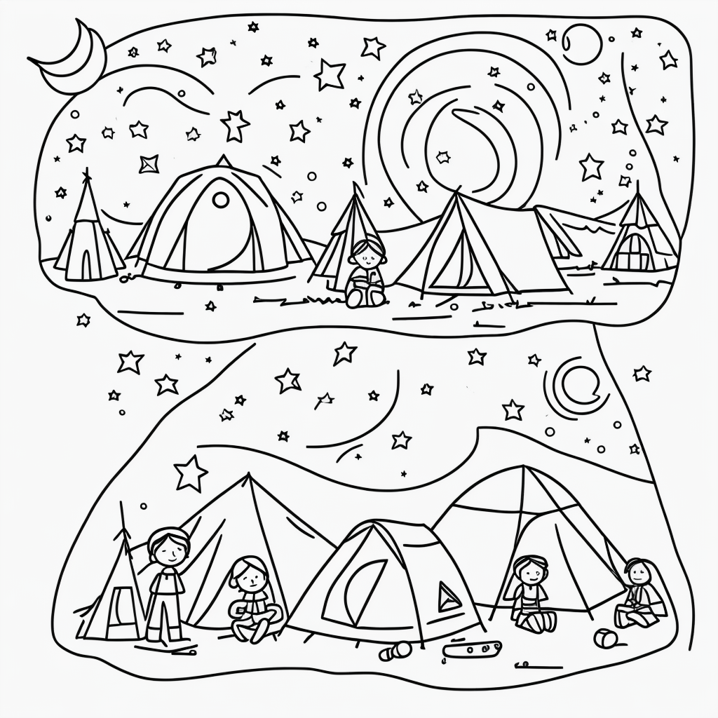 Discover the joy of camping through a unique, printable coloring page designed for children. This simple black and white vector…