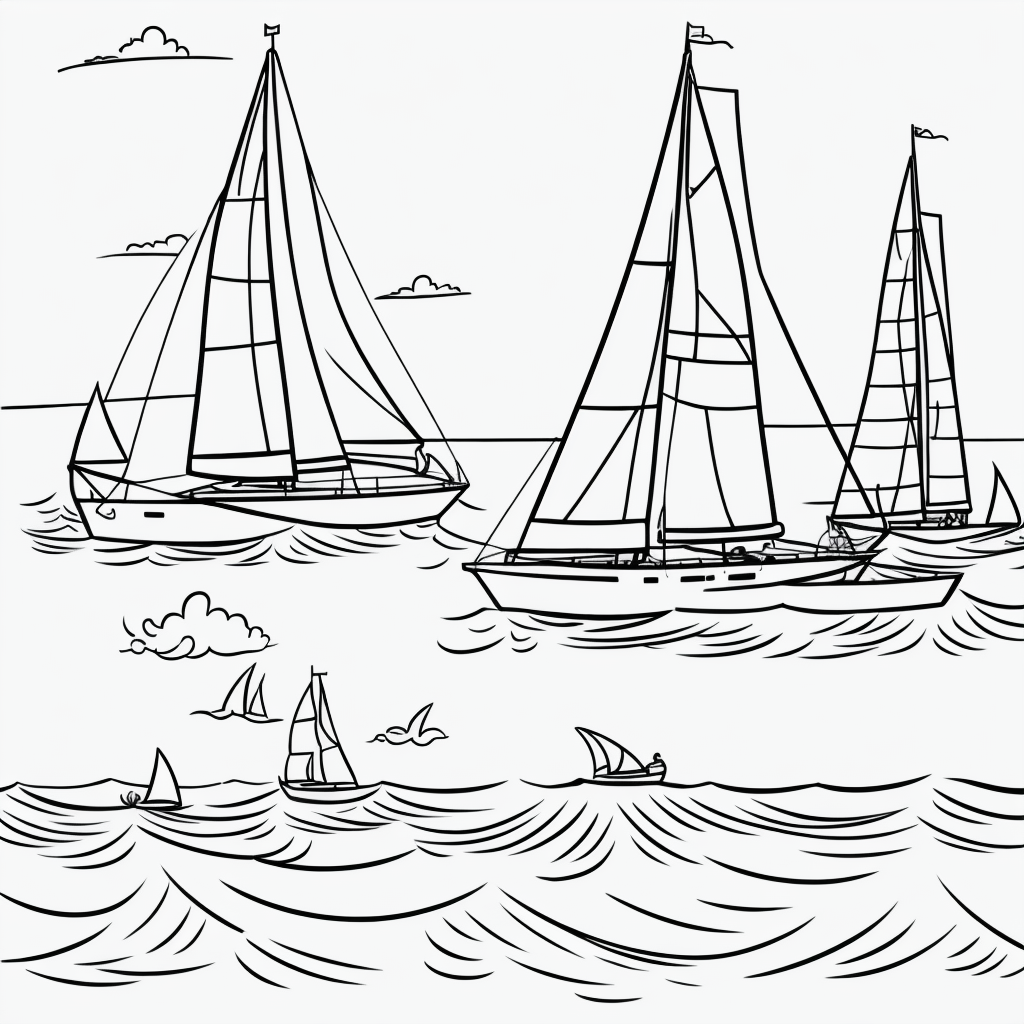 Stunning Sailboat Race Line Art for Kids’ Coloring Fun