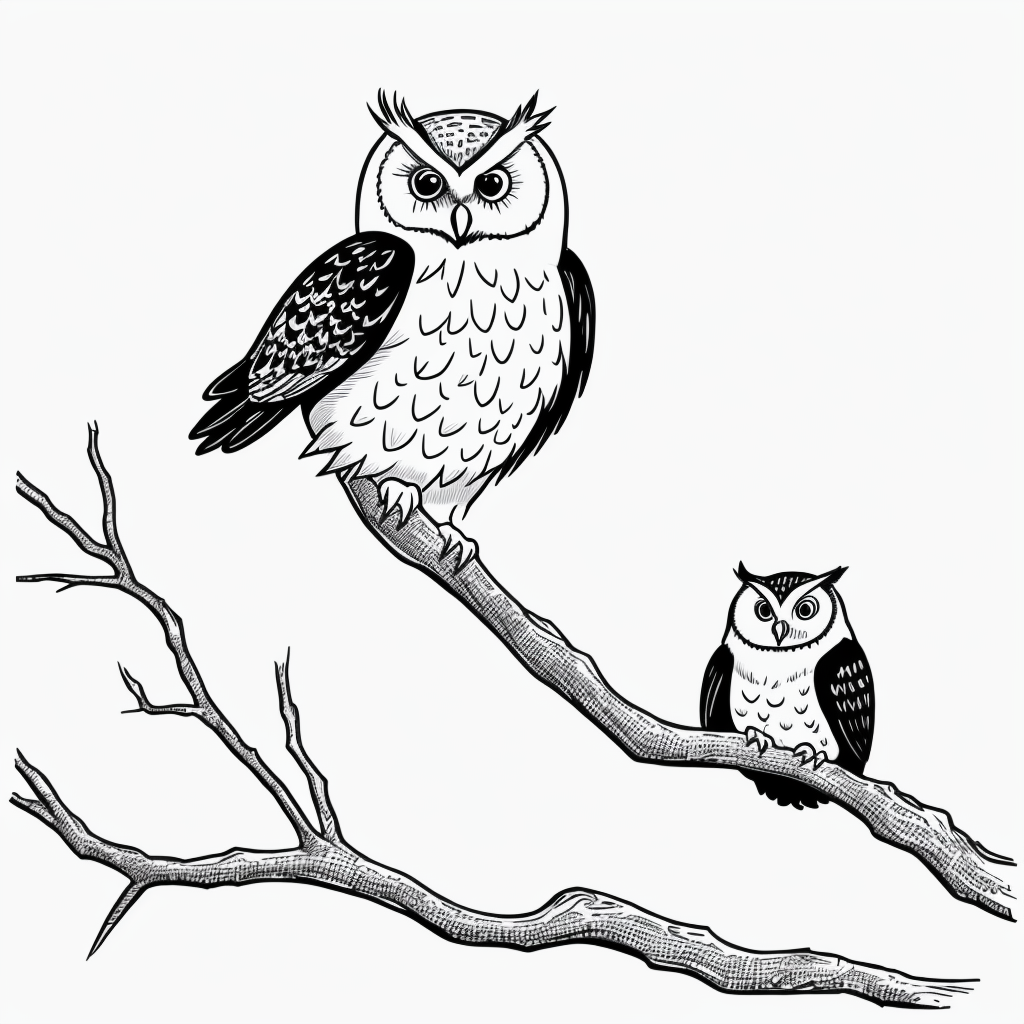 Discover a delightful simple black and white vector line art of a wise owl perched on a tree branch. This…
